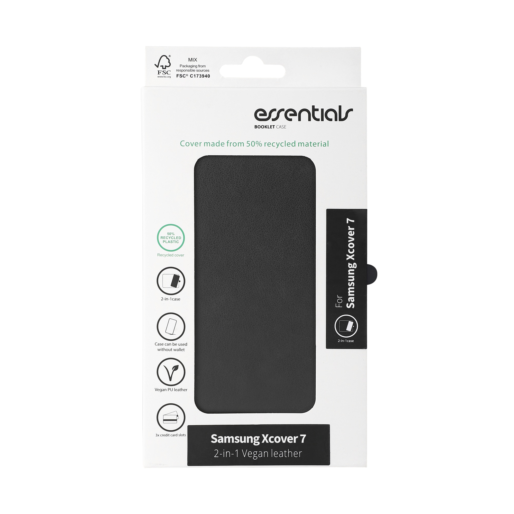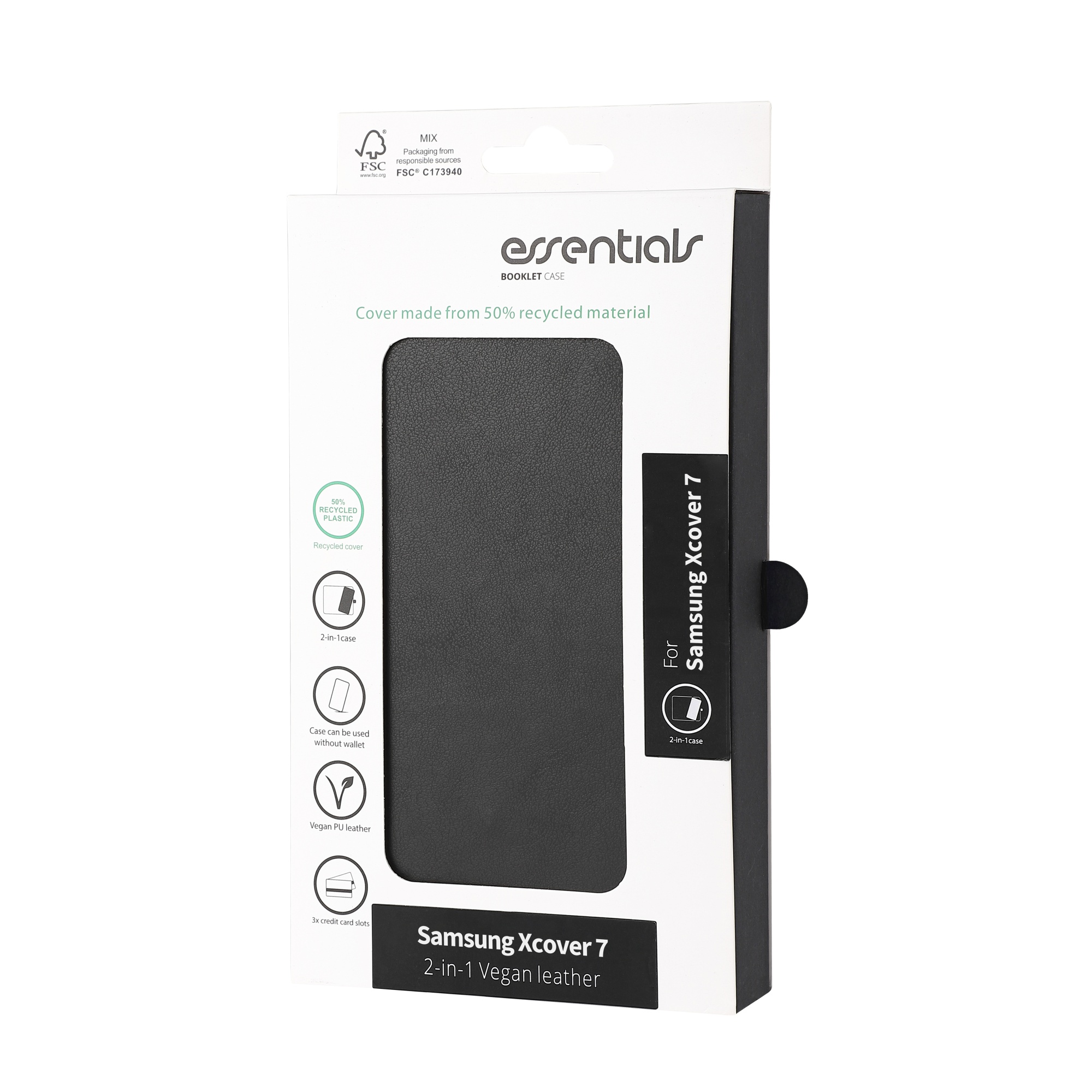 Samsung Galaxy XCover7 PU wallet, detachable, black
