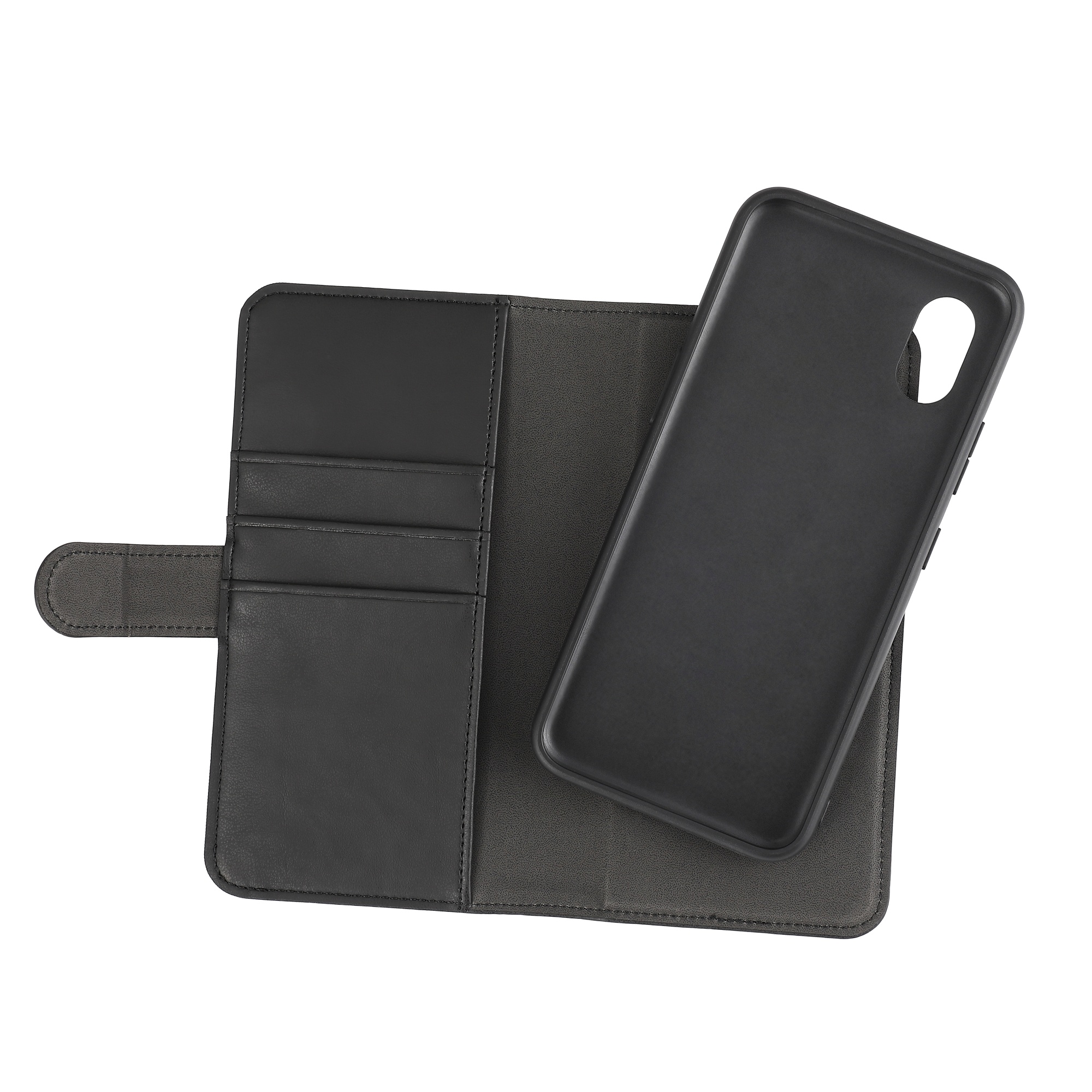 Dette 2-i-1 PU-tegnebogsetui med 3 kortpladser og aftageligt cover beskytter din telefon.