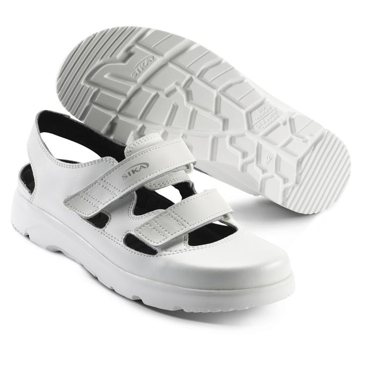 Denne lette og komfortable sandal er designet til optimal fodkomfort og sikkerhed. Sandalen har en dobbelt velcrolukning, der sikrer en nem og hurtig tilpasning. Overdelen er fremstillet af åndbart og slidstærkt Permair-læder, der giver god ventilation og holdbarhed.