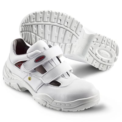 Let og komfortabel sandal med dobbelt velcrolukning. Fremstillet af slidstærkt, vandafvisende og hurtigttørrende microfiber, der er nem at rengøre. ESD godkendt, læderfri og med stål tåværn.