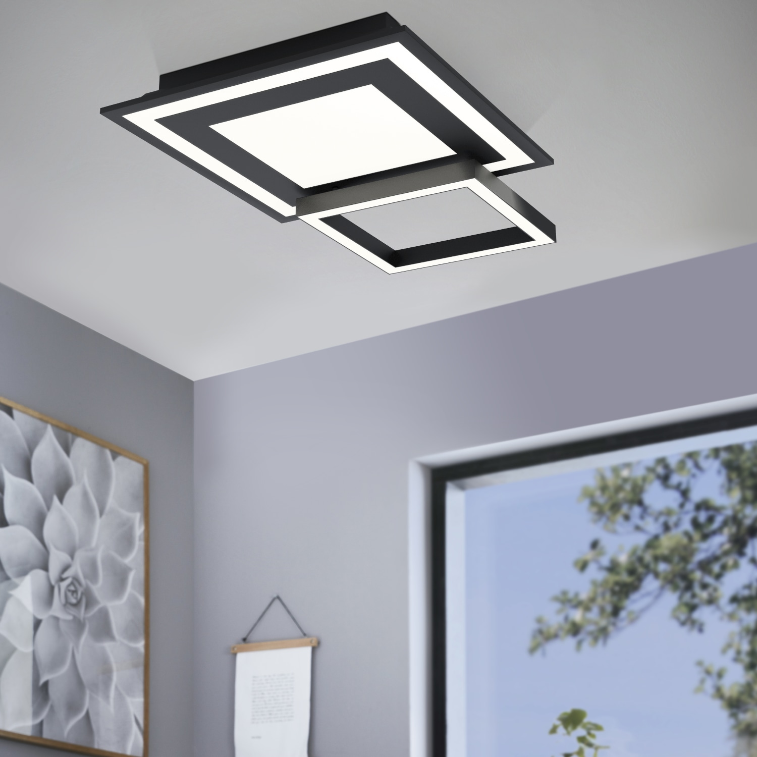 Denne loftlampe kombinerer moderne design med avanceret smart home-teknologi. Med en størrelse på 450x450 mm og en højde på 70 mm passer den diskret ind i ethvert moderne hjem. Lampen er fremstillet i stål og har en elegant sort finish.