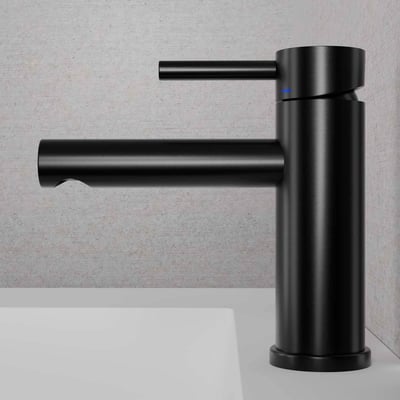 Elegant og stilrent håndvaskbatteri i rustfrit stål med sort finish. Betjenes med 1-grebs og tilsluttes nemt med flexslanger.