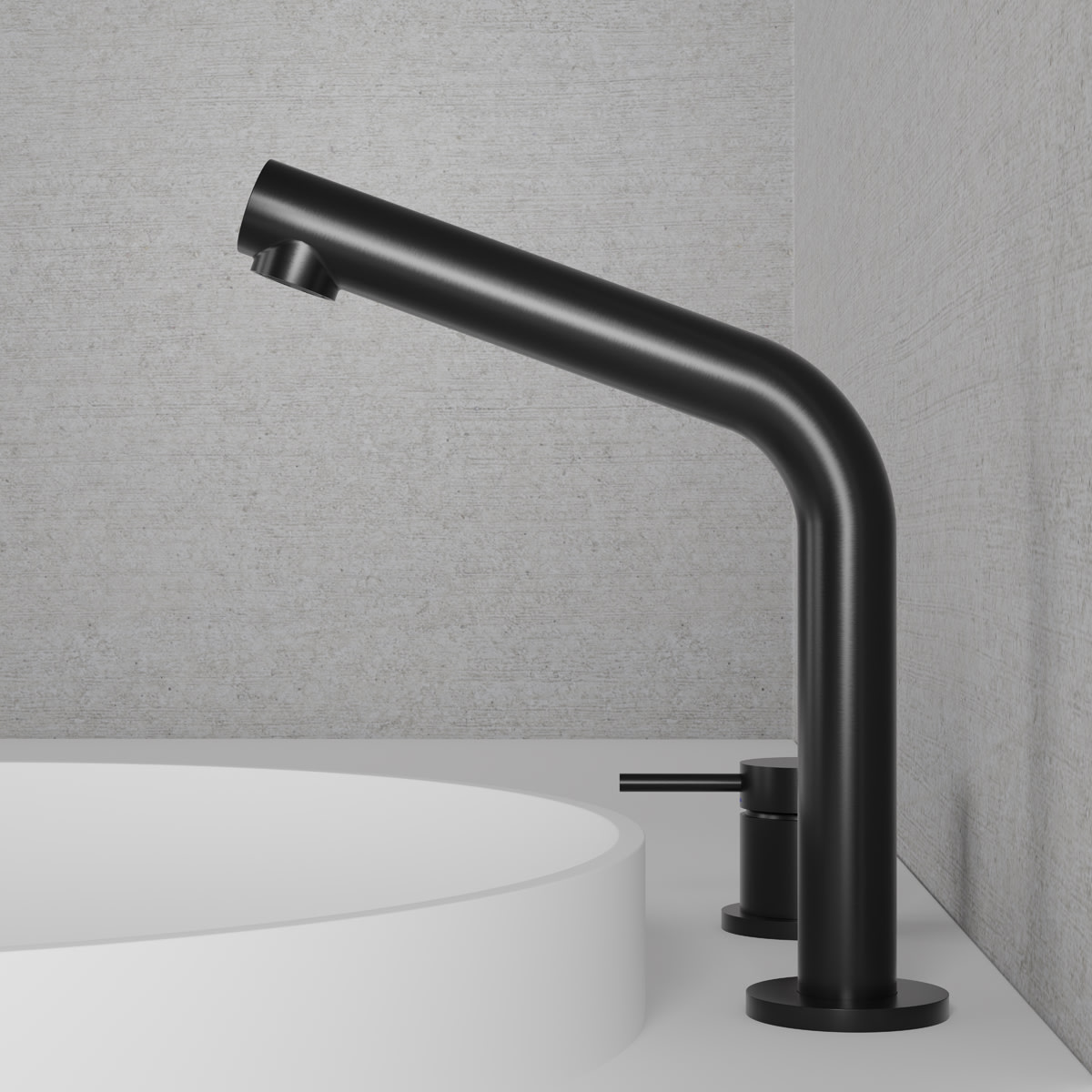 Scandtap Steel Harmonized B2 Shadow håndvaskbatteri i sort rustfrit stål. 1-grebs betjening, svingbar tud og vandbesparende funktion.