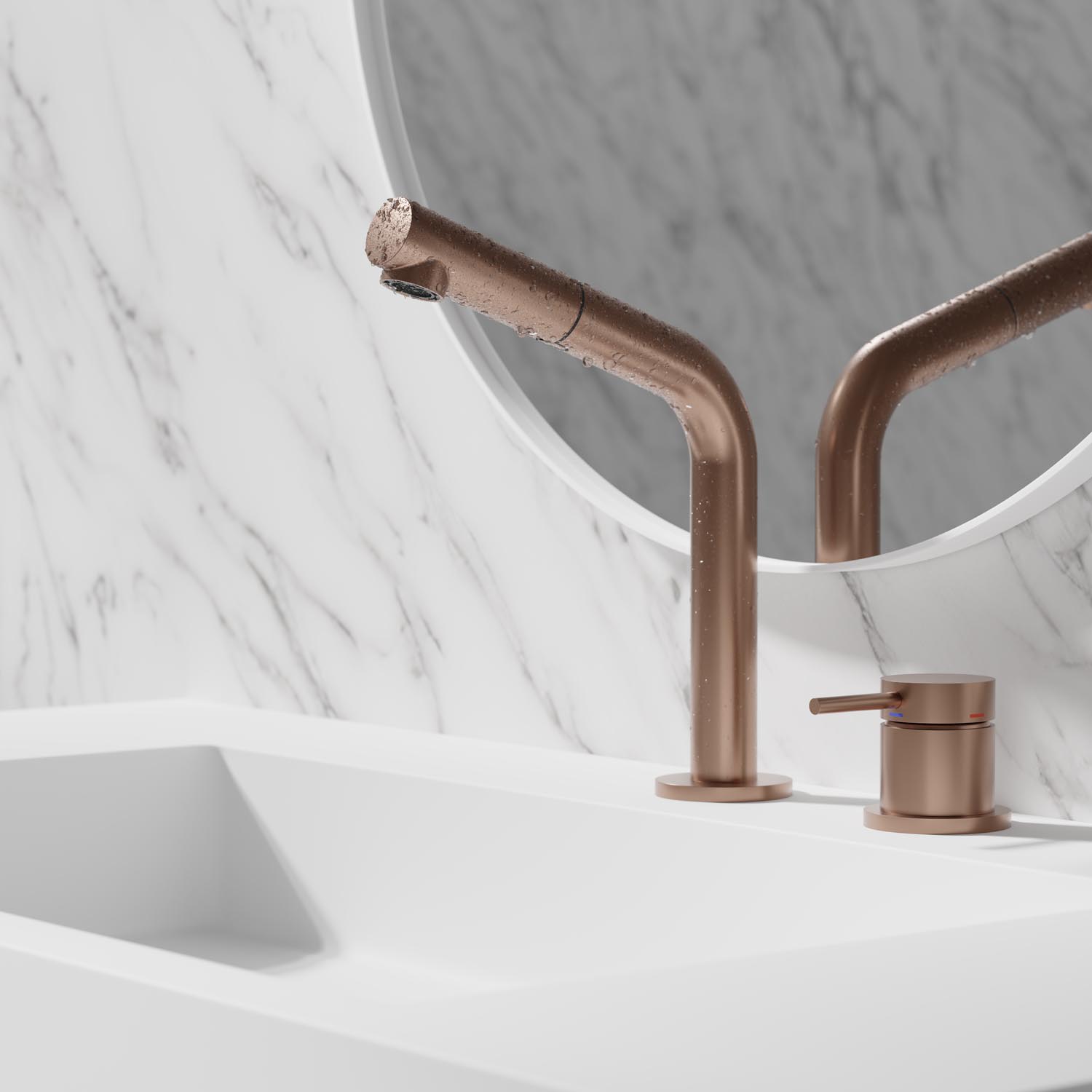 Dette elegante håndvaskbatteri fra Scandtap kombinerer moderne design med funktionalitet. Fremstillet i holdbart rustfrit stål og udført i en smuk kobberfarve, tilføjer det et stilfuldt touch til ethvert badeværelse.