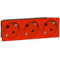 Schuko stikkontakt tripel, rød EDB 3X2P+J - Legrand