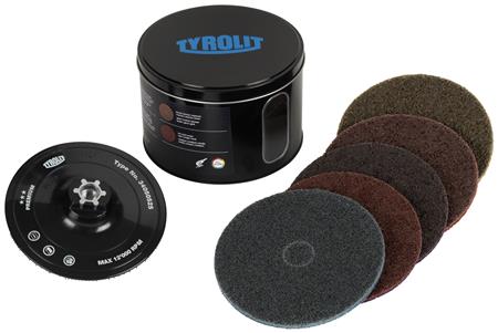Dette SCM-sæt indeholder alle fem tilgængelige grovheder – fra EKSTRA GROV til MEGET FIN. Sættet leveres med alle fem udgaver samt en innovativ bagflange til montering på vinkelsliberen.