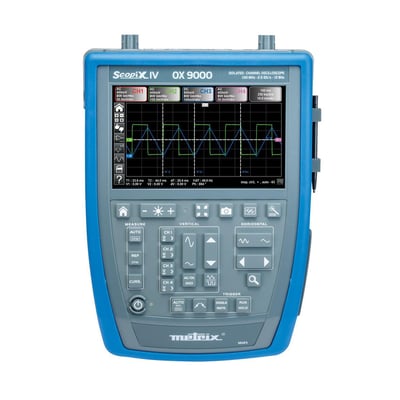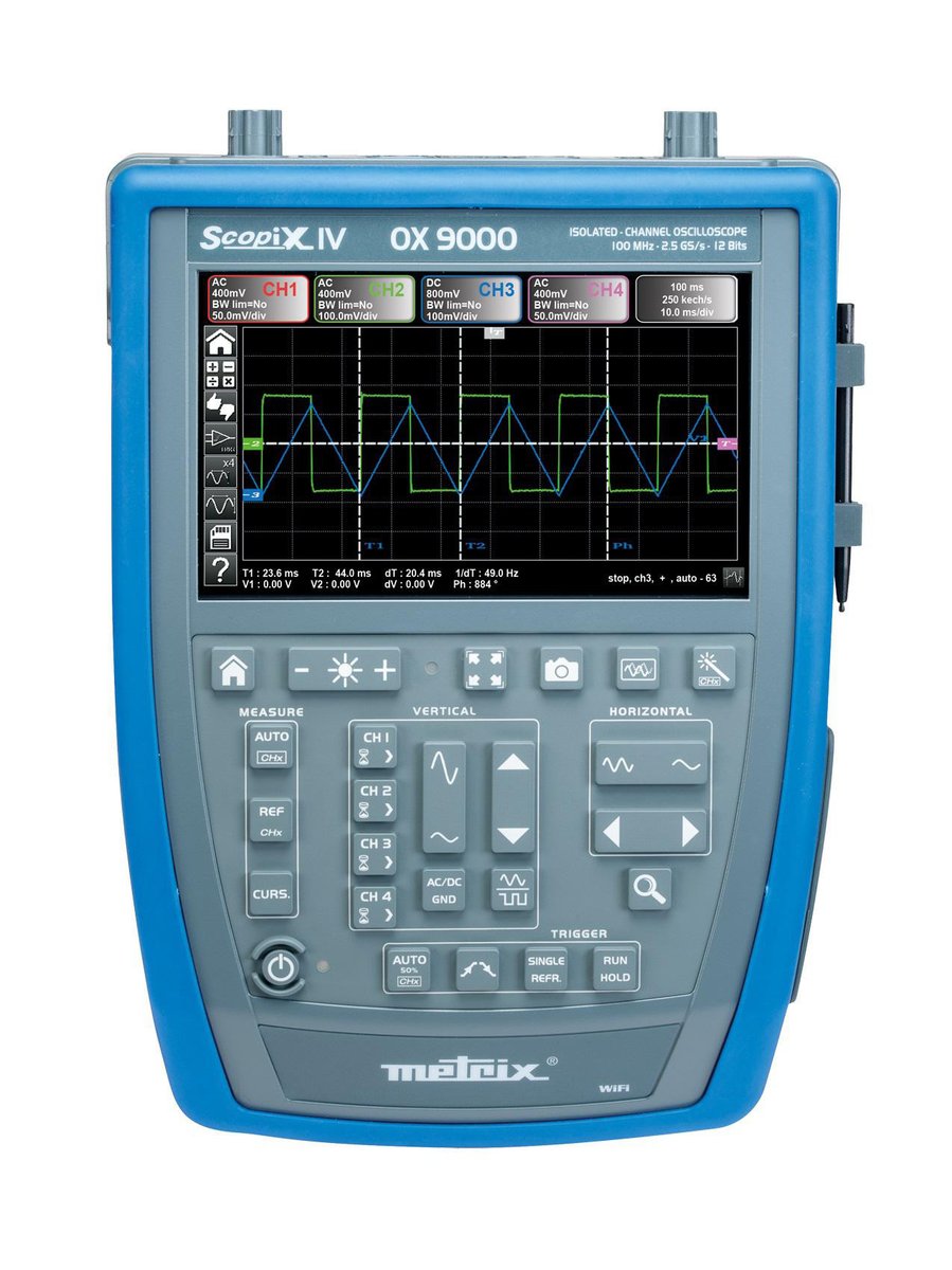 Scopix IV, OX9000 serien er et håndholdt oscilloskop med farveskærm og enestående specifikationer. Med en 800x480 pixels farve touchskærm og en båndbredde fra 60 til 300MHz, kan du vælge mellem 2 eller 4 kanaler. Oplev 2,5 GSa/s per kanal i singleshot og en opløsning på 12 bits.