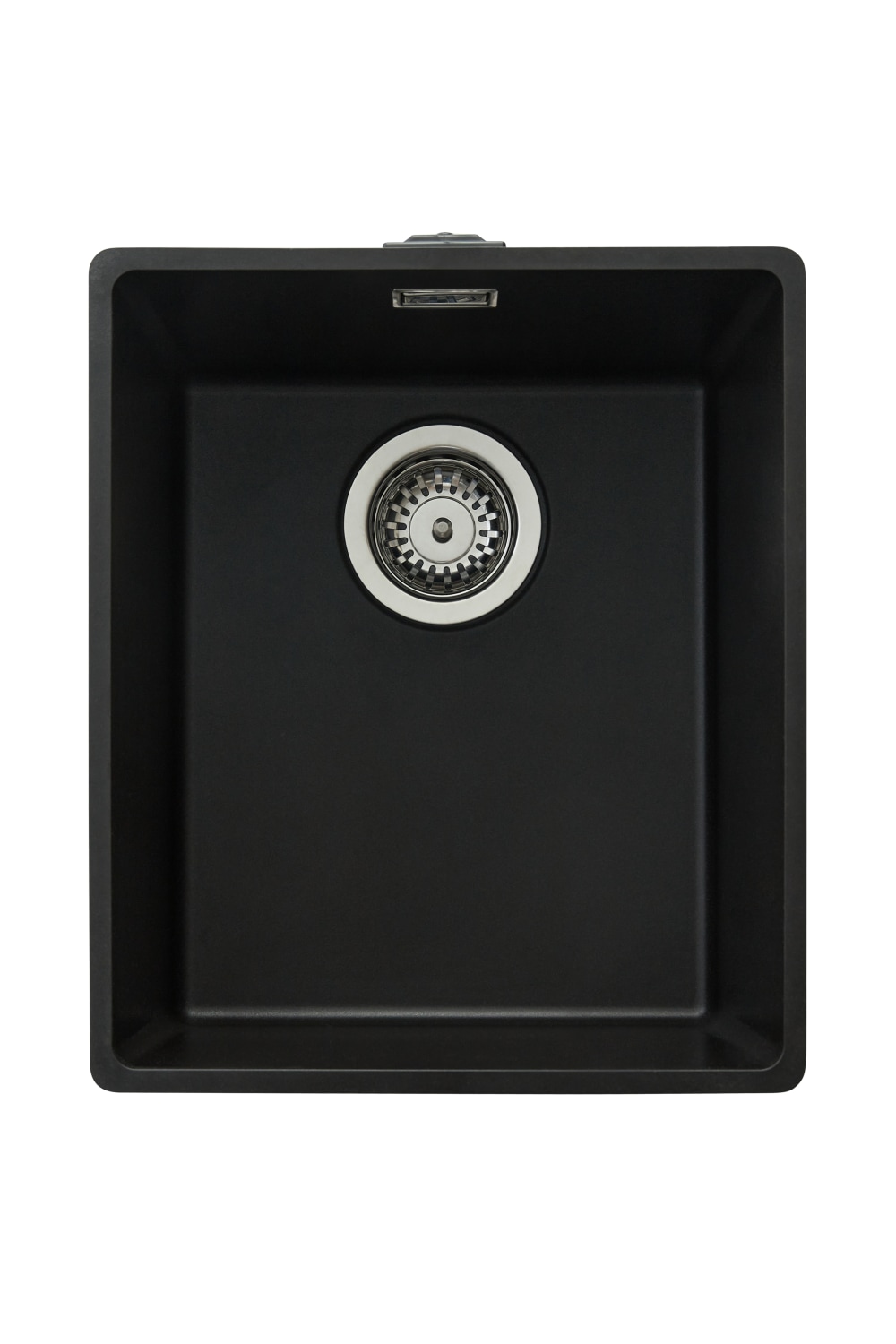 Secher køkkenvask i sort granitek. Mål: 365x425 mm. Til underlimning i 400 mm skab.