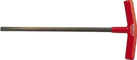 Bondhus T-grebsnøgle med svejst, ergonomisk håndtag for øget kraft og komfort. Vinylbelagt håndtag, rød for mm-størrelser. Ekstra lange klinger giver bedre adgang.