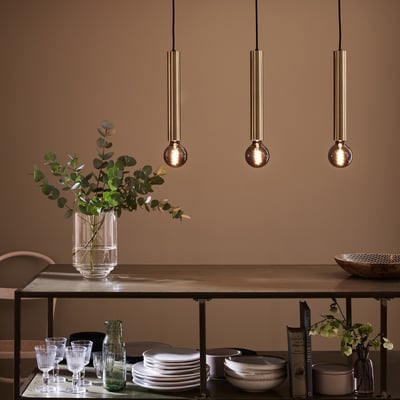 Sencillo pendlen er en elegant langbordspendel, der tilføjer et stilfuldt touch til ethvert rum. Med sit messingfinish og minimalistiske design passer den perfekt over spiseborde, køkkenøer eller i stuen.