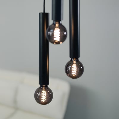 Elegant Sencillo pendel med tre lyskilder i sort metal. Perfekt til indendørs brug.