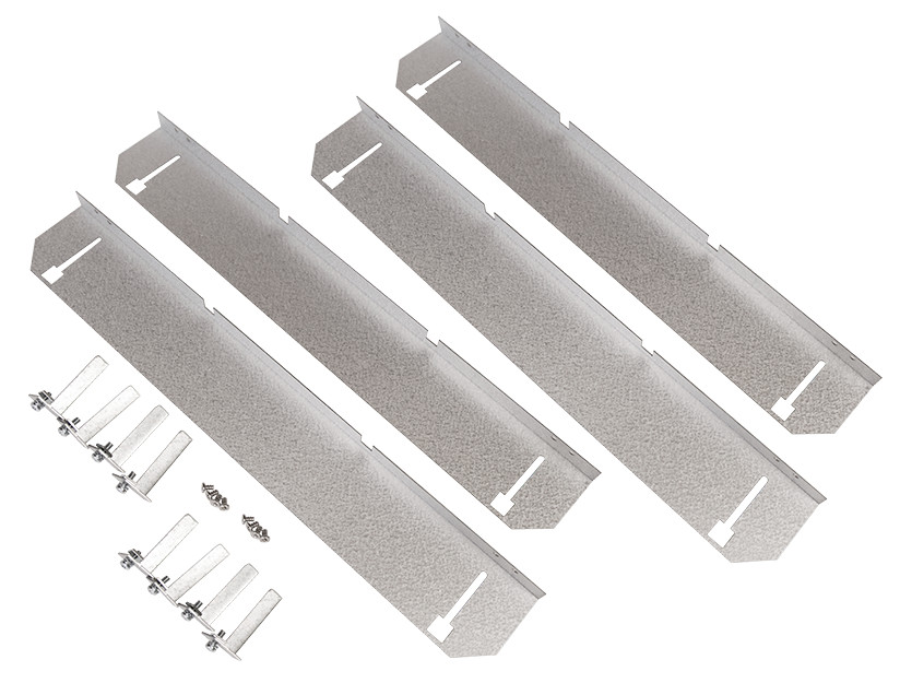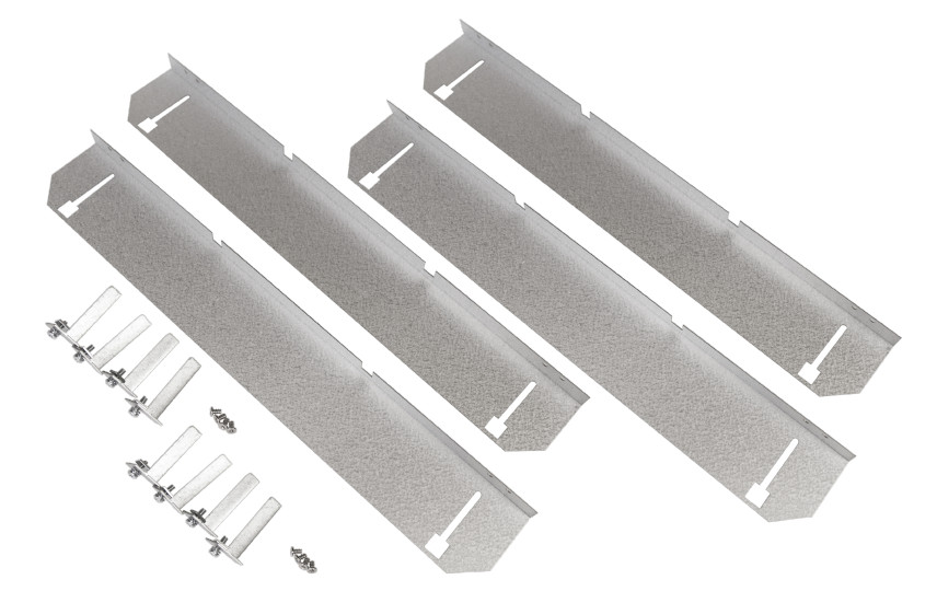 Beslag til Sense planforsænkning for Troldtekt 300x1200. Beslaget muliggør planforsænket montering af Sense LED-paneler i Troldtekt akustiklofter, hvilket giver et stilrent udseende.