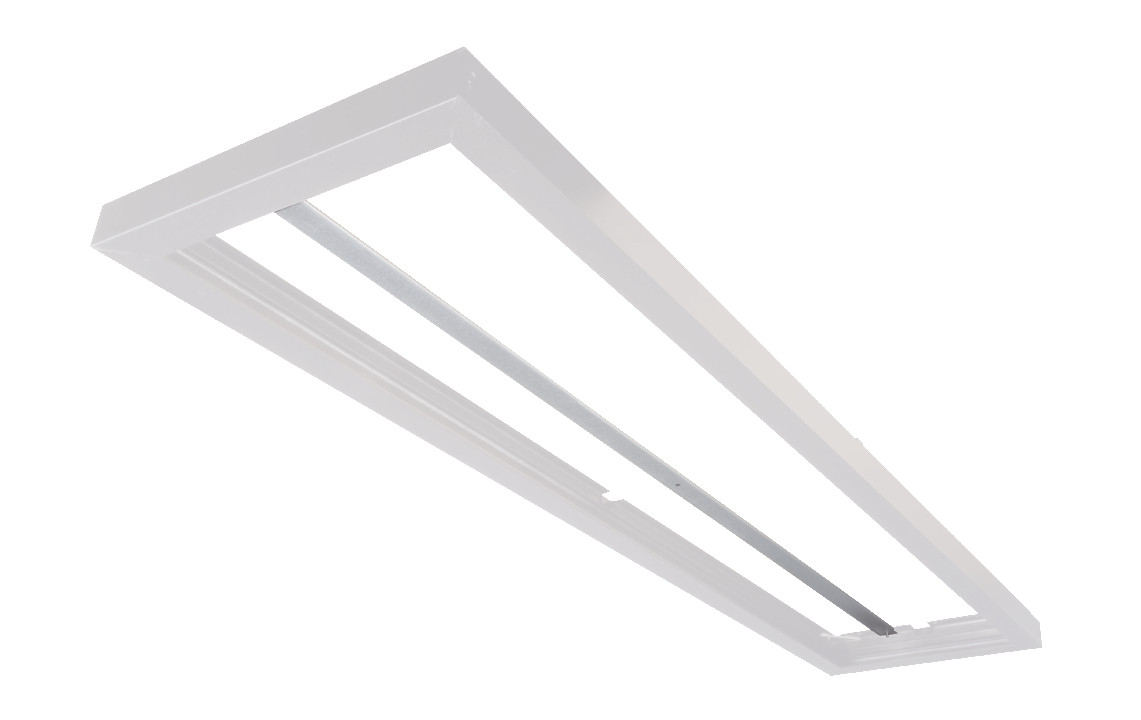 Hvid Sense påbygningsramme i aluminium til indendørs brug. Mål: 303 x 1203 x 47 mm.