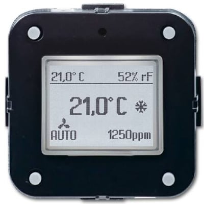 Denne ABB KNX sensor er designet til at styre opvarmning og afkøling. Den fungerer som et styringselement med en integreret rumtermostatfunktion og sensorer til CO2, fugtighed og lufttryk. Sensoren kan også igangsætte aktuatorer til opvarmning, ventilation og ventilatorspoler.