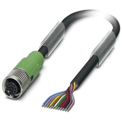 12-polet sensor-/aktuatorkabel fra Phoenix Contact. PUR halogenfri, sort RAL 9005, åben ledningsende, til bøsning lige M12 SPEEDCON, A-kodet, 10 meter.