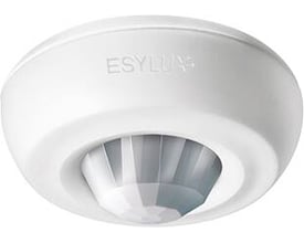 Esylux bevægelsessensor til loftindbygning med 360° detektering, rækkevidde ca. Ø 8 m og mulighed for fjernbetjening. Fabriksprogram: 100 lux/5 min.