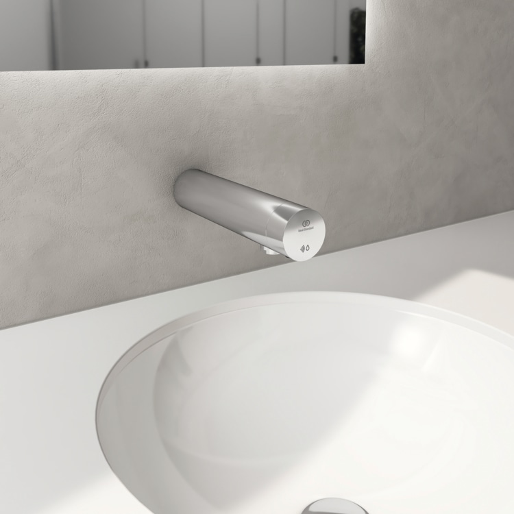 Dette Sensorflow håndvaskarmatur fra Ideal Standard er udført i krom og designet til vægmontering. Armaturet er elektronisk med en 6V sensor, der sikrer berøringsfri betjening.