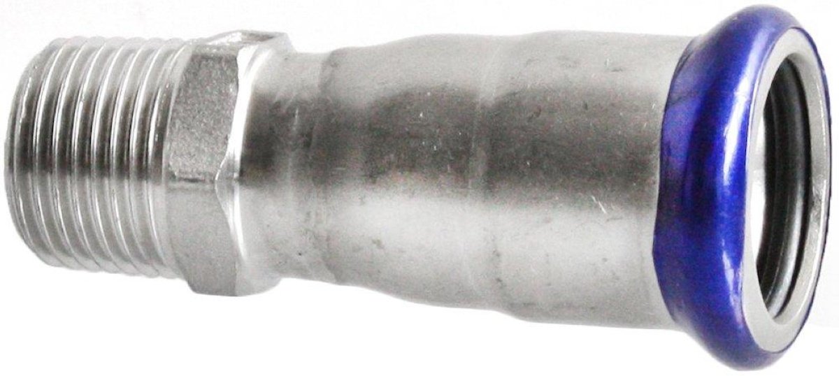 Unico rustfri overgangsnippel med udvendigt gevind og pressmuffe.