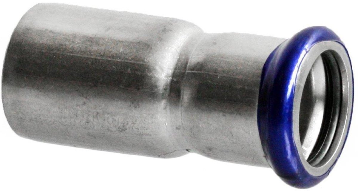 Nippelenden gør at reduktionen kan monteres direkte i andre pressfittings som f.eks bøjninger eller T-stykker.