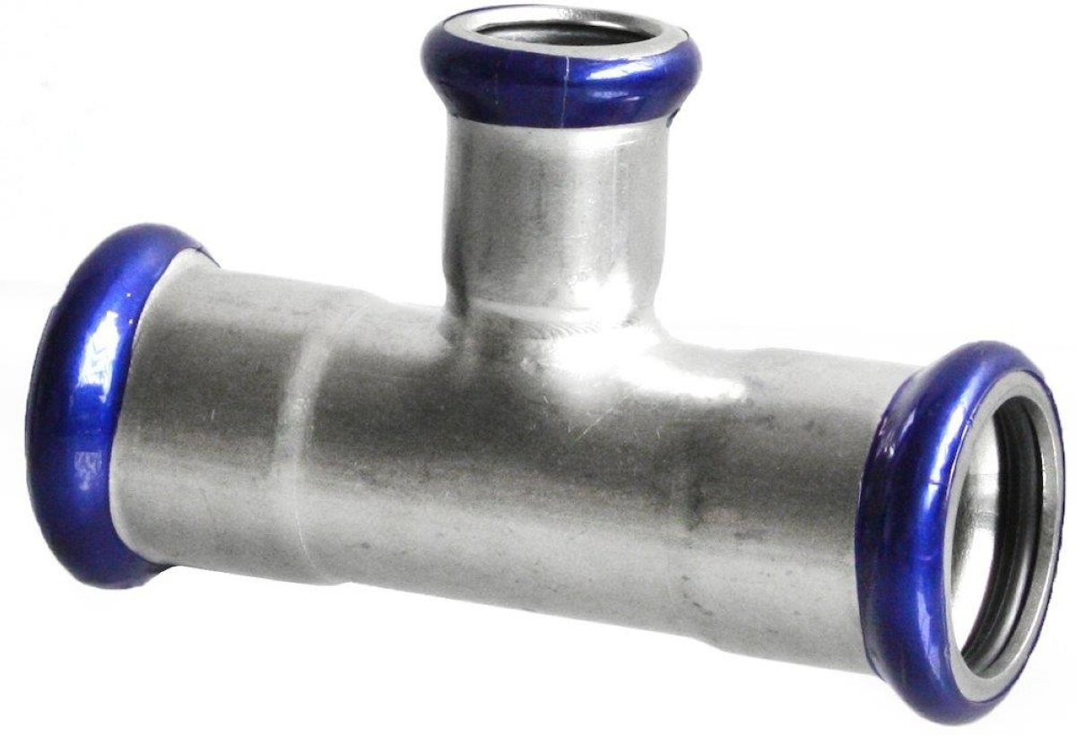 Unico rustfrit reduceret T-stykke med pressmuffer. T-stykket bruges f.eks hvor dimensionen på afgreningen skal være mindre end dimensionen på hovedledningen. Kan anvendes...