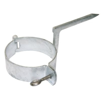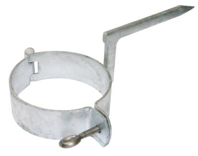 Galvaniseret hængselsstift til sikker fiksering af nedløbsrør på mure. Stiften er 87 mm i diameter, har en sømlængde på 108 mm og leveres med øjeskrue.