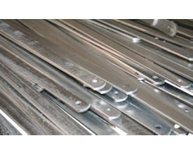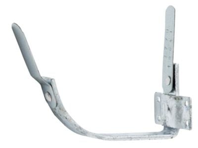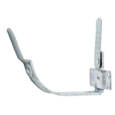 Konsoljern nr. 11 til 1/2-rund zink tagrende med hel bagvulst. Fremstillet i stål med aluminium nitter og zinkfjedre. Mål: 25 x 4 mm.