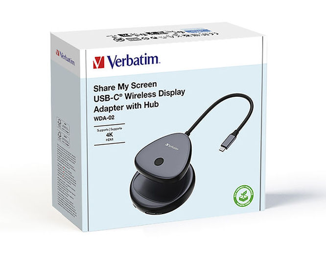 Med Share My Screen USB-C Wireless Display Adapter 4K Hub fra Verbatim kan du nemt dele din skærm trådløst i høj kvalitet. Denne adapter understøtter 4K opløsning, hvilket sikrer skarpe og detaljerede billeder.