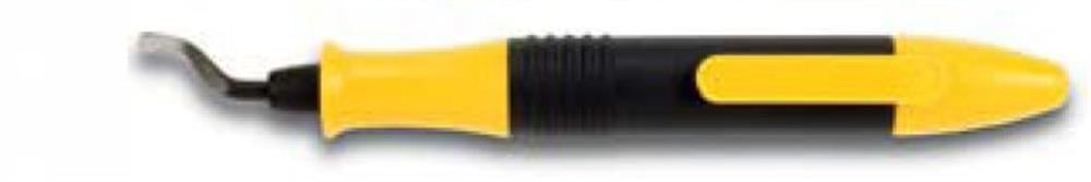 Plastafgrater med lommeclips og aftageligt låg til knive. Praktisk håndtag til alle E-knive og udskiftelige knive. Til krævende afgratning af hjørner, kanter, huller, noter og rør.