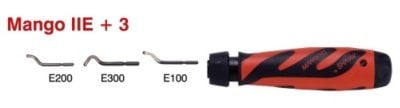 Shaviv Mango II E afgratersæt med ergonomisk håndtag og 3 knive (E100, E200, E300). Ideelt til stål, aluminium, kobber og plastik.