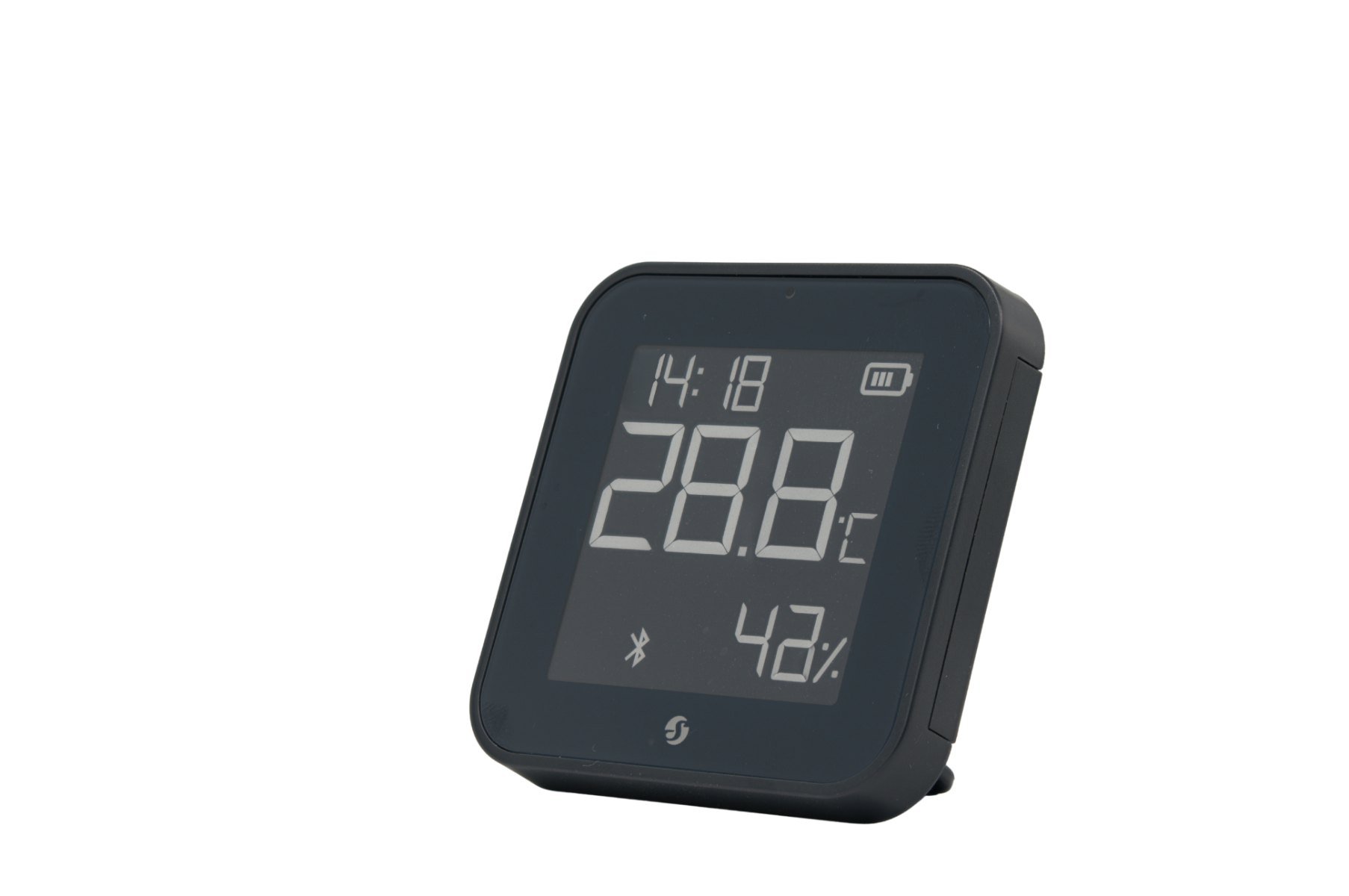 Sensoren måler kun 65×65×9 mm (uden stander) og kan monteres med dobbeltklæbende tape eller placeres på et bord ved hjælp af den medfølgende stander. Dens præcise målinger gør den ideel til brug i automatiserede systemer, såsom styring af opvarmning eller ventilation i badeværelser.