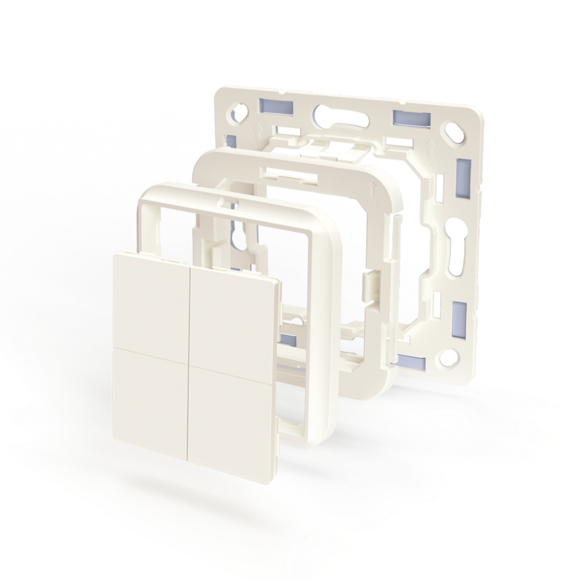 Bemærk: Til installation i SE Exxact kræves Exxact Combi Frame (WDE002801). Hvis enheden skal monteres direkte på en væg uden en indbygningsboks, vælg den fritstående version: 3800238073053 – Shelly BLU Wall Switch 4 ZB, stand-alone.
