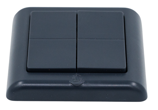 Batteridrevet vægkontakt med 4 knapper. Styr lys, scener m.m. Op til 5 års batterilevetid.