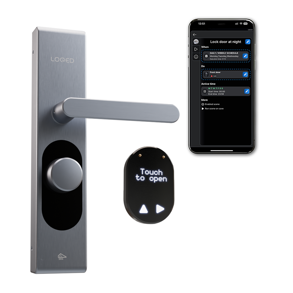 LOQED Smart Lock er en fuldt nøglefri smartlås, designet til europæiske døre, som giver brugerne mulighed for at låse og oplåse deres dør ved hjælp af en smartphone, PIN-kode eller et enkelt touch. Den forbinder via Bluetooth og Wi-Fi, hvilket muliggør fjernadgang og integration med smart home-systemer.