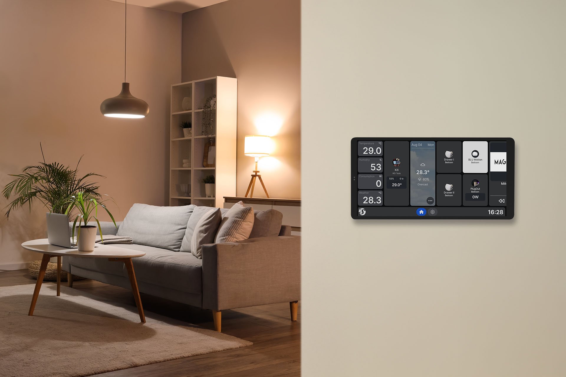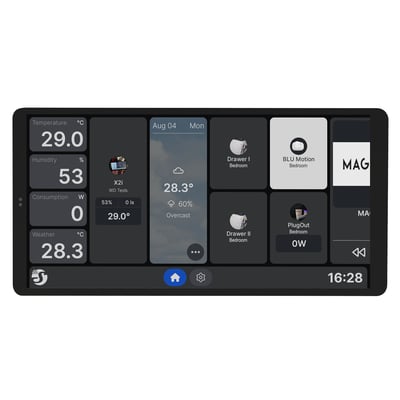 Shelly Wall Display X2i er en avanceret 6.9" touchskærm designet til professionel styring af smart home og bygningsinstallationer. Den giver direkte kontrol over belysning, opvarmning, solafskærmning og Sonos/Bluetooth-højttalere.