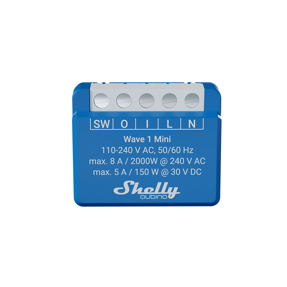 Shelly Qubino Wave 1 Mini er et trådløst Z-Wave-baseret 1-kanals, 8A relæ med et potentialfrit kontaktsæt. Relæet er designet til installation bag afbryderen, stikkontakten eller lampeudtaget, hvilket giver nem betjening og automatisering af belysning, garageporte, vandingsanlæg, badeværelsesventilatorer og stort set alle eksisterende elektriske apparater. Takket være det ekstremt kompakte design passer det i de fleste væg- og loftsdåser.