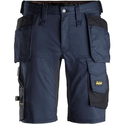 AllroundWork stretch shorts fra Snickers med slim fit, hylsterlommer og strategisk 4-vejs stretch for optimal fleksibilitet og komfort.