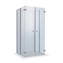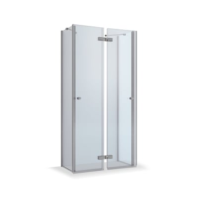 Elegant brusekabine med klart glas, krom profiler og vendbar montering. Mål: 90x90x200 cm.