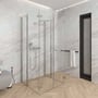 Prisma 6 er designet til lige bagvægge og tilbyder en vendbar montering, der sikrer fleksibilitet under installationen. Med en højde på 200 cm og en bredde på 90x90 cm, giver kabinen rigelig plads.