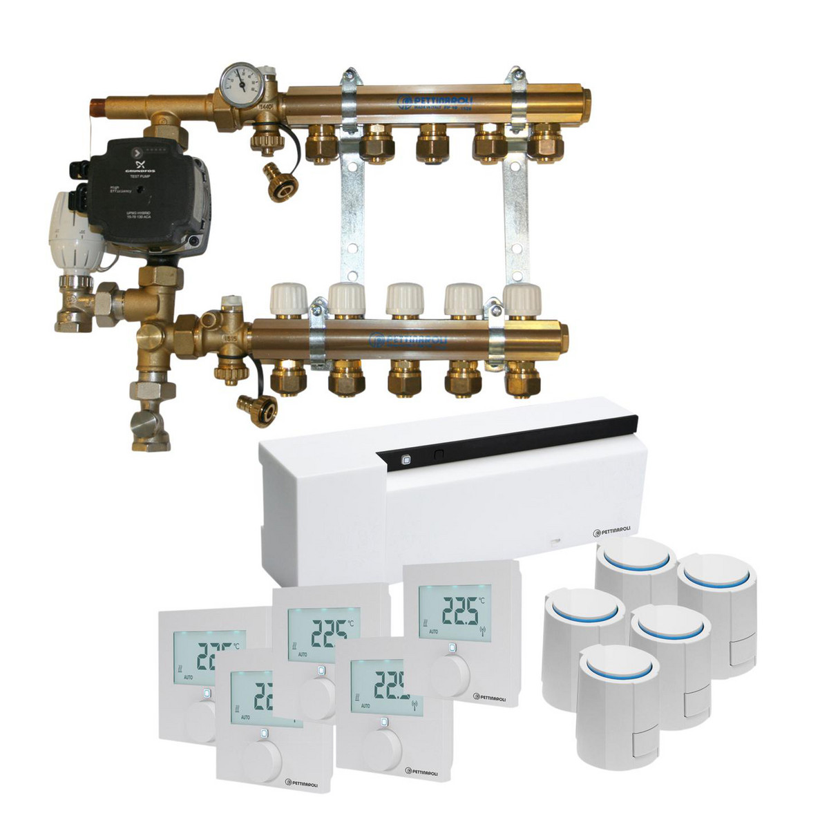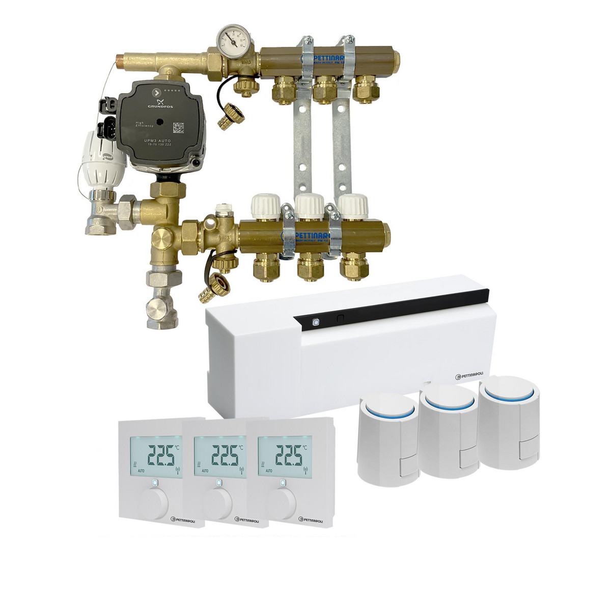 Denne pakkeløsning fra Pettinaroli indeholder alt, hvad du behøver for at installere og styre gulvvarme i op til 3 zoner. Systemet er samlet og pakket i en kasse, hvilket gør installationen hurtig og nem.