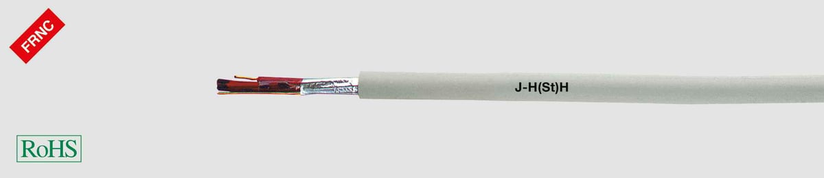 Halogenfrit, brandhæmmende og skærmet 0,8 mm signalkabel med grå kappe. Til indendørs brug i kraftværker og lignende. Må ikke lægges i jorden.
