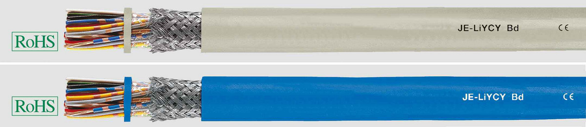 Signalkabel med PVC-kappe og aluminiumskærm til indendørs installation. Tysk farvekode.