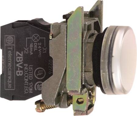Komplet hvid pilotlampe med LED til eksplosionsfarlige miljøer. Ø 22 mm montagediameter.