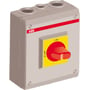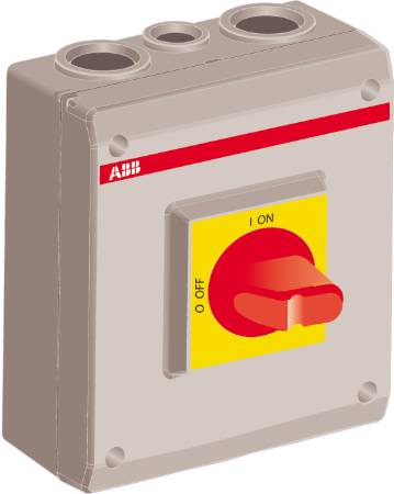 6-polet sikkerhedsafbryder, 22kW, 45A ved 400V AC-23. Med plastkapsling, rød/gul drejegreb, 2xM25+M16 i top/bund, nulklemme og 1NO hjælpekontakt.