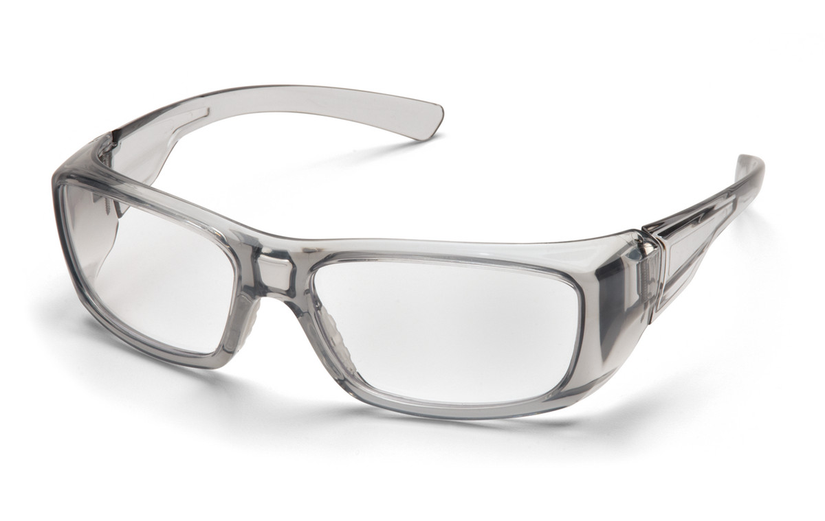 Sikkerhedsbrille Pyramex Emerge RX med styrke +2,0. Kurvede linser af slagfast polycarbonat, antiridsebehandlet og UV-beskyttende. God sidebeskyttelse. EN 166 godkendt.