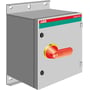 3-polet sikkerhedsafbryder fra ABB med 200A, EMC, rød/gul greb og metalkapsling. Ideel til sikker og pålidelig strømafbrydelse.