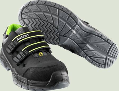 Metalfri sikkerhedssandal med lynlukning, tåkappe af komposit og sømværn af specialtekstil. ESD-godkendt og varmebestandig op til 140°C.