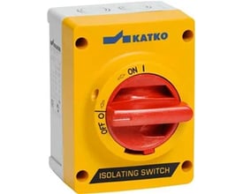 Katko sikkerhedsafbryder i kunststofkapsling med 2 forskruninger. Kapslingen er IP65 og udført i selvslukkende polycarbonat med god UV resistens.