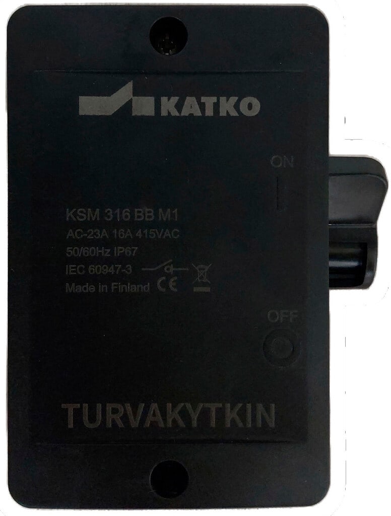 Katko KSM Black sikkerhedsafbryder i diskret sort farve. Med kapslingsklasse IP67, UV- og kemikaliebestandighed, M20 forskruninger og store klemmer.