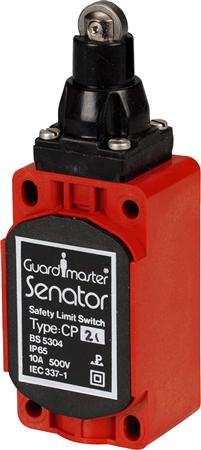 Sikkerhedsendestop i metal med 30mm hus, kort arm, 1 slutte og 1 åbne kontakt. Snap acting og M20 forskruning.