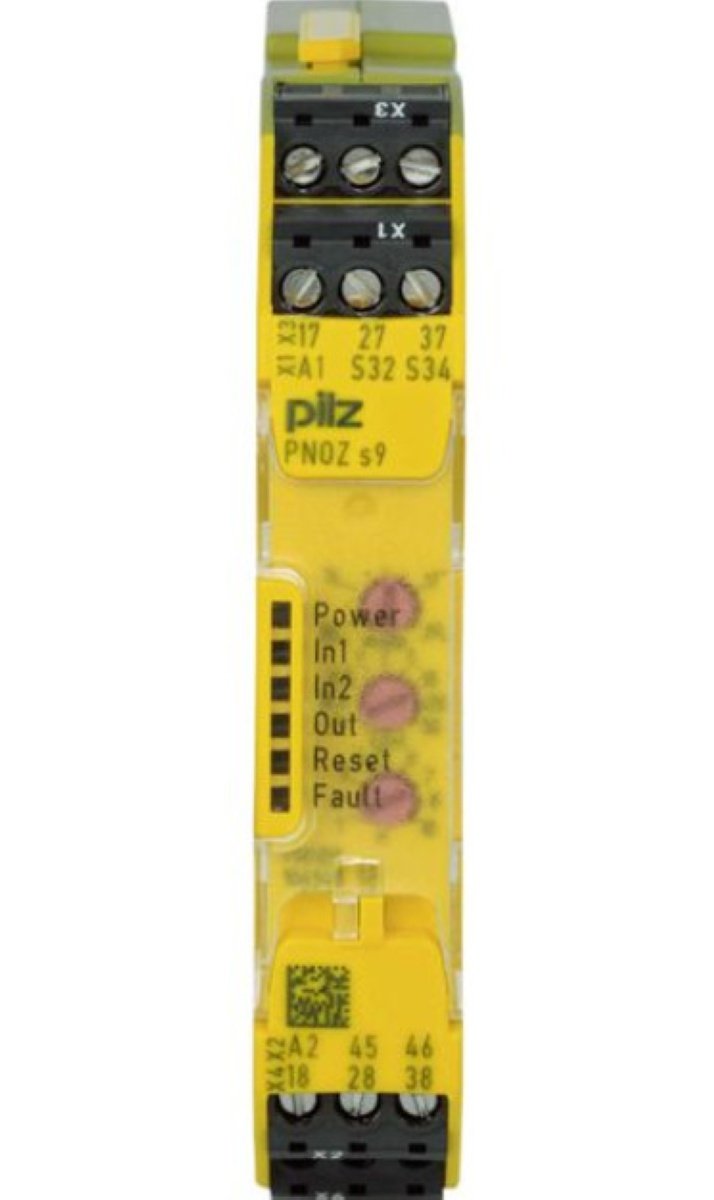 Sikkerhedsrelæ med 3 slutte (NO) og 1 bryde (NC) kontakter. Driftsområde: -15 til 55°C. Type: 750109, Alias: PNOZ s9 24VDC.